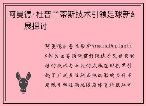 阿曼德·杜普兰蒂斯技术引领足球新发展探讨