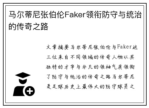 马尔蒂尼张伯伦Faker领衔防守与统治的传奇之路