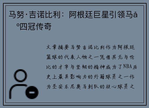 马努·吉诺比利:阿根廷巨星引领马刺四冠传奇